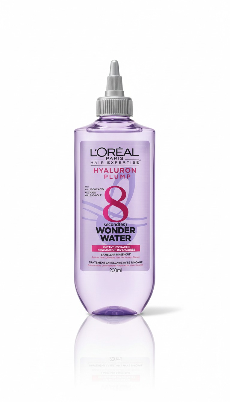 Transform your hair in just 8 seconds with this innovative lamellar rinse-out treatment. Specially formulated with Hyaluronic Acid, this lightweight liquid formula instantly moisturizes and detangles dehydrated hair without weighing it down. It works by targeting damaged areas of the hair fiber with ultra-thin layers of conditioning agents (lamellar technology), resulting in a glass-like shine and a silkier, “plumped” feel.
