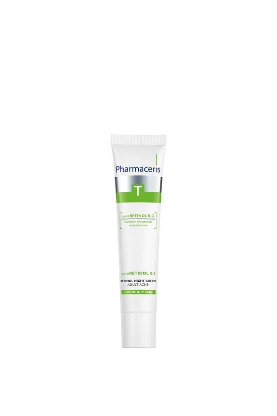 Acne-prone Skin. The cream has a high concentration of 0.3% pure retinol that offers a balanced anti-wrinkle and anti-acne effect, restoring normal skin function during hormonal changes. The encapsulation of retinol in ceramide microspheres ensures its stability and adequate protection from oxidation, effectively eliminating and preventing the recurrence of severe hormonal acne (papules, pimples, blemishes). Retinol restores homeostasis, reduces excessive sebum secretion and unblocks and shrinks pores, It also has a very strong anti-wrinkle effect, forming anchoring fibrils between the epidermis and the dermis, reducing the depth, number and volume of wrinkles and fine lines. When used regularly, the cream helps smooth and improve skin texture. To ensure optimal skin comfort, the formula is enriched with moisturising and nourishing emollient ingredients (lily extract, shea butter, olive wax and cottonseed oil) and 4% biomimetic squalane that strengthens the lipid barrier of the epidermis.
